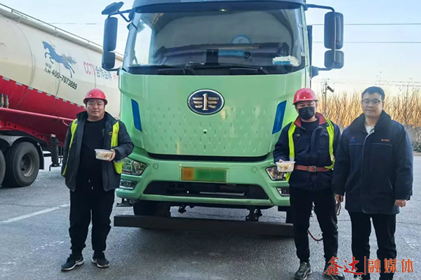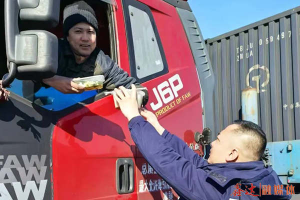 在供餐现场,当一路风尘仆仆的司机师傅们接过这份免费的热乎便餐时,脸上洋溢着感动与满足。其中一位货车司机感慨道:“跑了这么久的车,可以说风餐露宿,吃上如此暖心的饭菜,让我们这些在外的人心里特别暖和,谢谢鑫达!”一份份饱含美味与温暖的便餐在大家手中传递,一声声关切的叮咛在耳边流转,温暖与关爱也如同一股暖流,在寒风里悄然流淌,让司机们在寒冷的冬日里感受到了家一般的温暖。