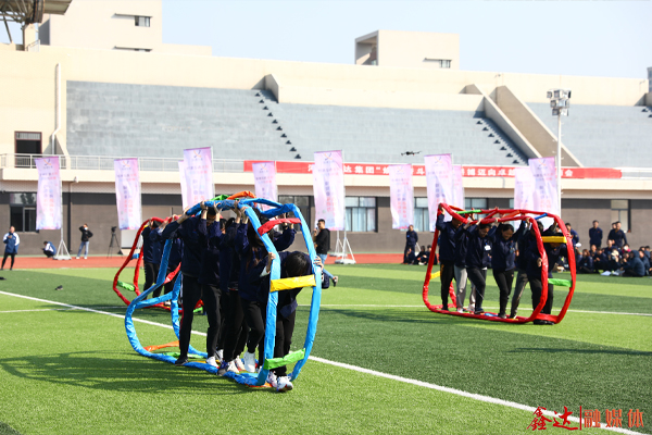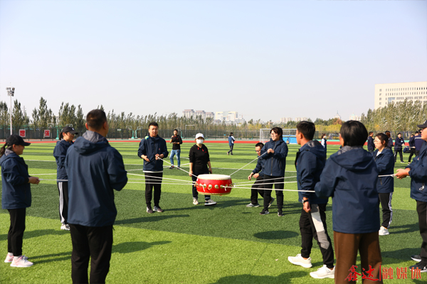 同心击鼓项目中,运动员默契配合,同心协力将鼓腾空,击鼓颠球,将鑫达人心往一处想、劲往一处使、眼往一处看的精神体现得淋漓尽致。